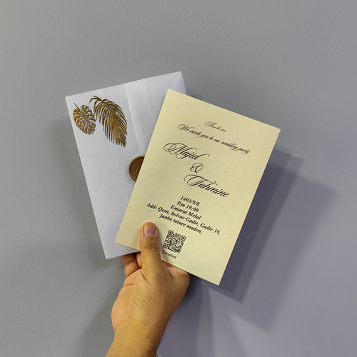 جنس پاکت کالک طلاکوبدار. جنس تویه مقوای متالایز. چاپ اطلاعات عروسی داخل کارت. قیمت درج شده قیمت تمام شده کارت می باشد، دیگر نیازی به پرداخت هزینه اضافی بجز هزینه پست نیست. تعداد کمتر از 100 عدد امکان سفارش وجود ندارد در صورت واریز مبلغ 72 ساعت بعد عودت داده خواهد شد. جهت چاپ اطلاعات عروسی داخل کارت بعد از خرید کارت عروسی مد نظر از طریق واتس آپ یا تلگرام با شماره 09141058588 در ارتباط باشید.